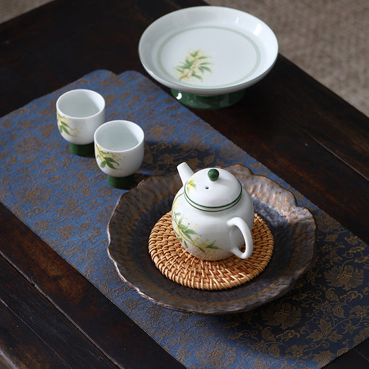 Vintage Coarse Pottery Gilded Heart Sutra Teapot Stand Dry Brewing Tray Household Tea Tray Mat Tea Table Cover Bowl Tray Teapot Base