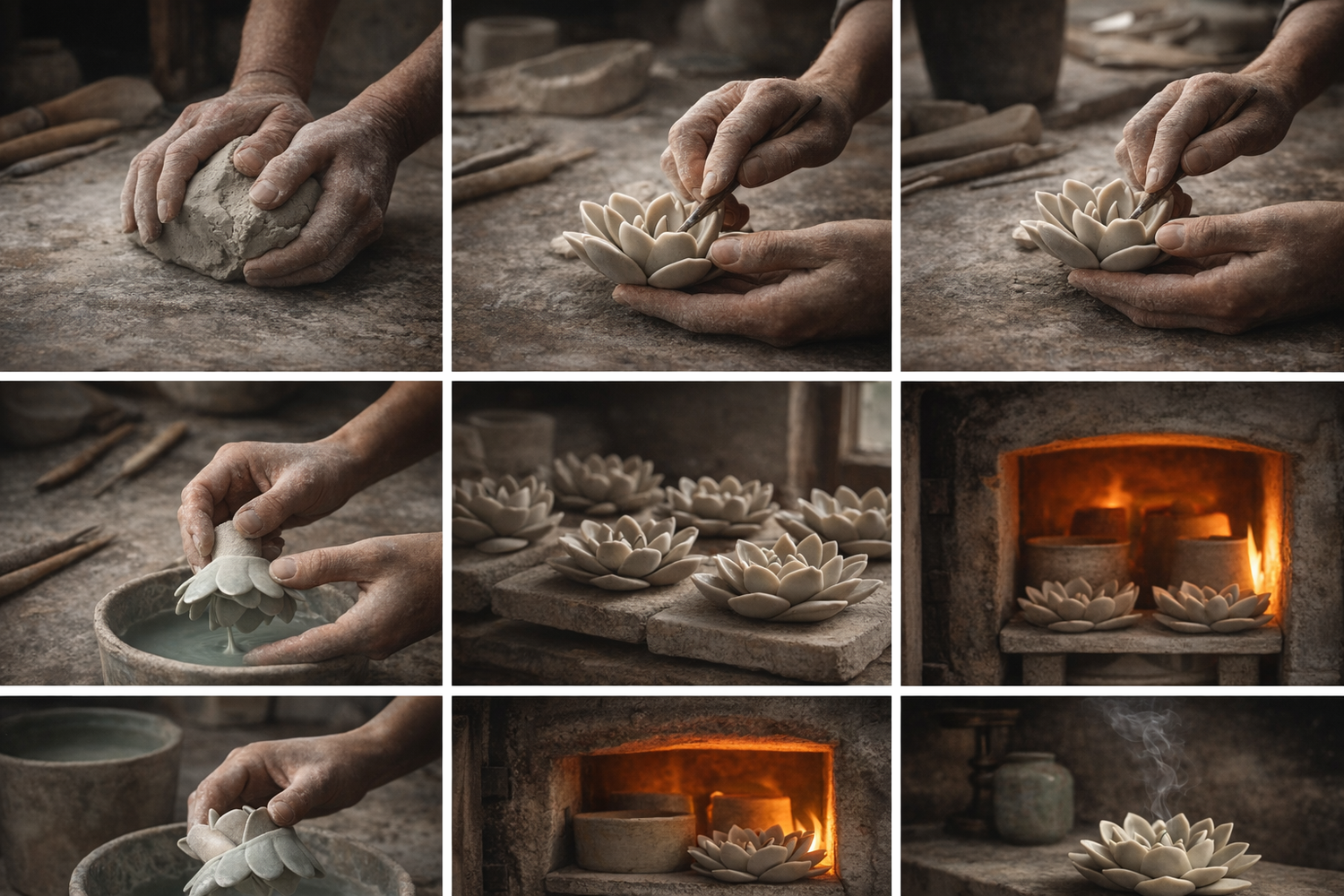 We work with traditional porcelain techniques that have been passed down through generations, shaping each piece slowly by hand and refining it through fire and time...