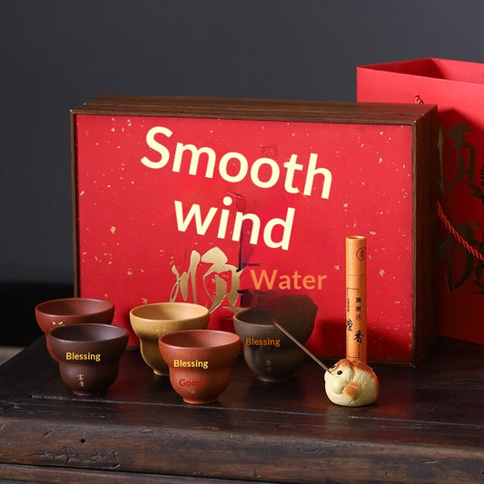 Smooth Sailing Yixing Purple Clay Tea Cup Set Purple Clay Tasting Cup High-end Gift for Clients Souvenir